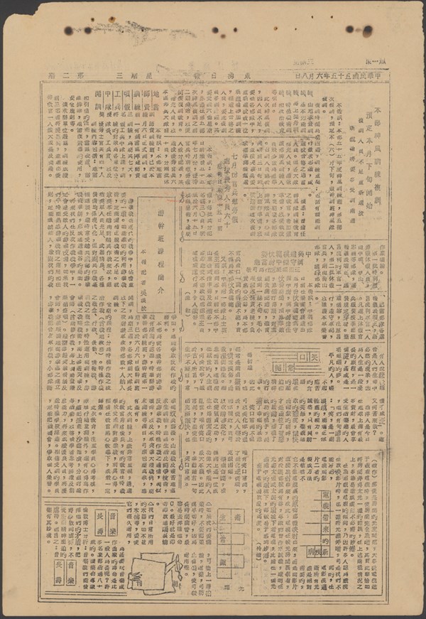 中華民國55年6月8日東湧日報第三七五一期第一版 -