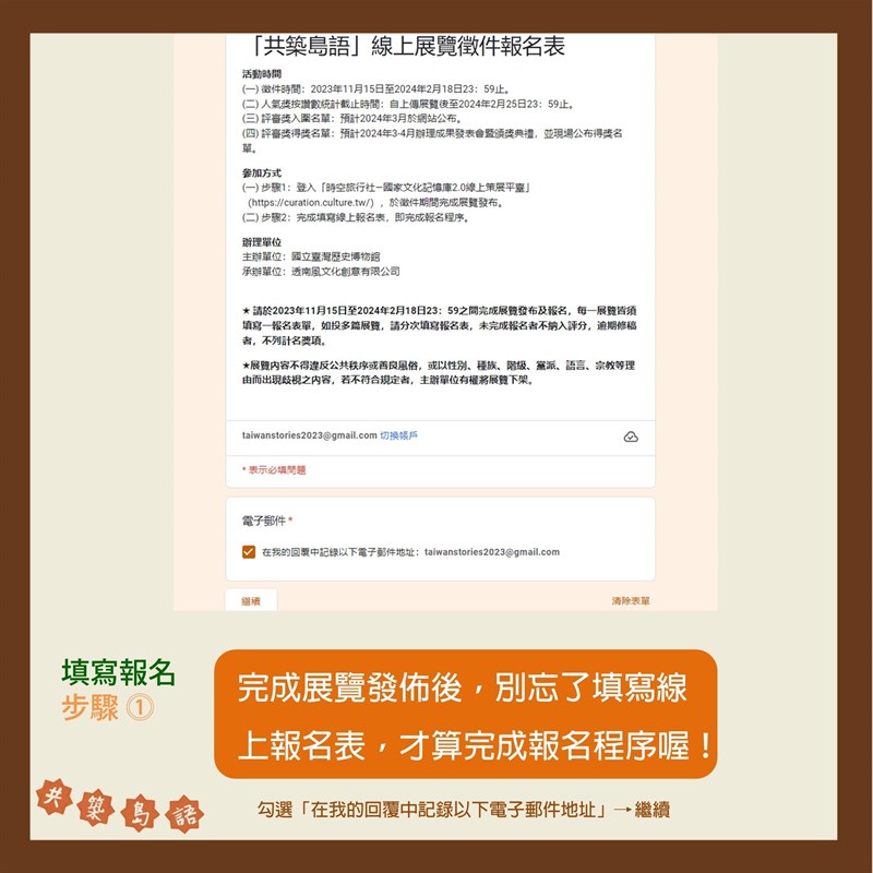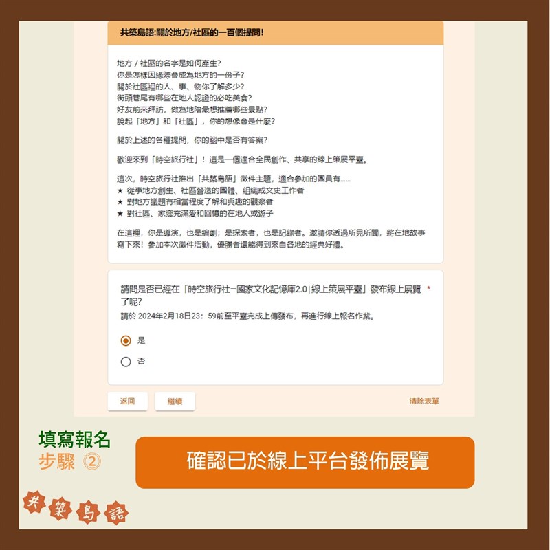 (一) 步驟1:登入時空旅行社,於徵件期間完成展覽發布。