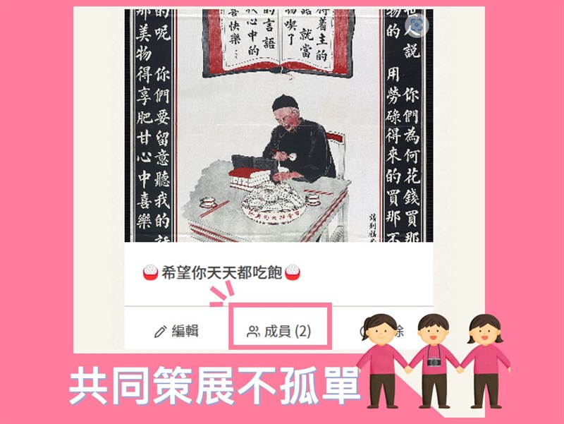 除了個人策展人,我們發現有許多展覽是由「策展團隊」所組成。因此網站開發「共同策展」功能,讓策展團隊的成員只需加入網站會員,即可透過其中一位成員開設展覽並加入策展成員,團隊成員皆能在線上同時編輯展覽。