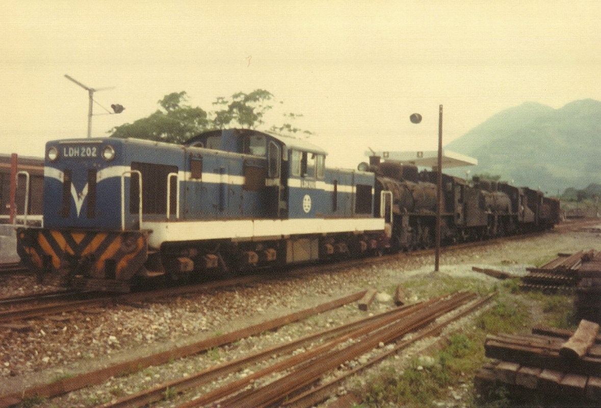 民國71年(1982)6月東部鐵路拓寬前,停放在玉里機關車庫的各型蒸汽機車,由LDH200型柴液機車分批牽引到花蓮,推測這張照片便是牽引途中的其中一站。玉里位在花蓮縣南端,也是東臺灣的中部位置,因此玉里機關庫可說是臺東線各類火車的中途點,由於蒸汽火車需要適時加水、加煤,所以無論南下或北上的車次,都要在玉里機關庫停車補給、休息。萬榮站雖以萬榮為名,但實際位置並不在萬榮鄉,而是鳳林鎮,現今只停靠莒光號與區間車。此照片由李雲霖提供,拍攝於民國71年(1982)的萬榮站內。。