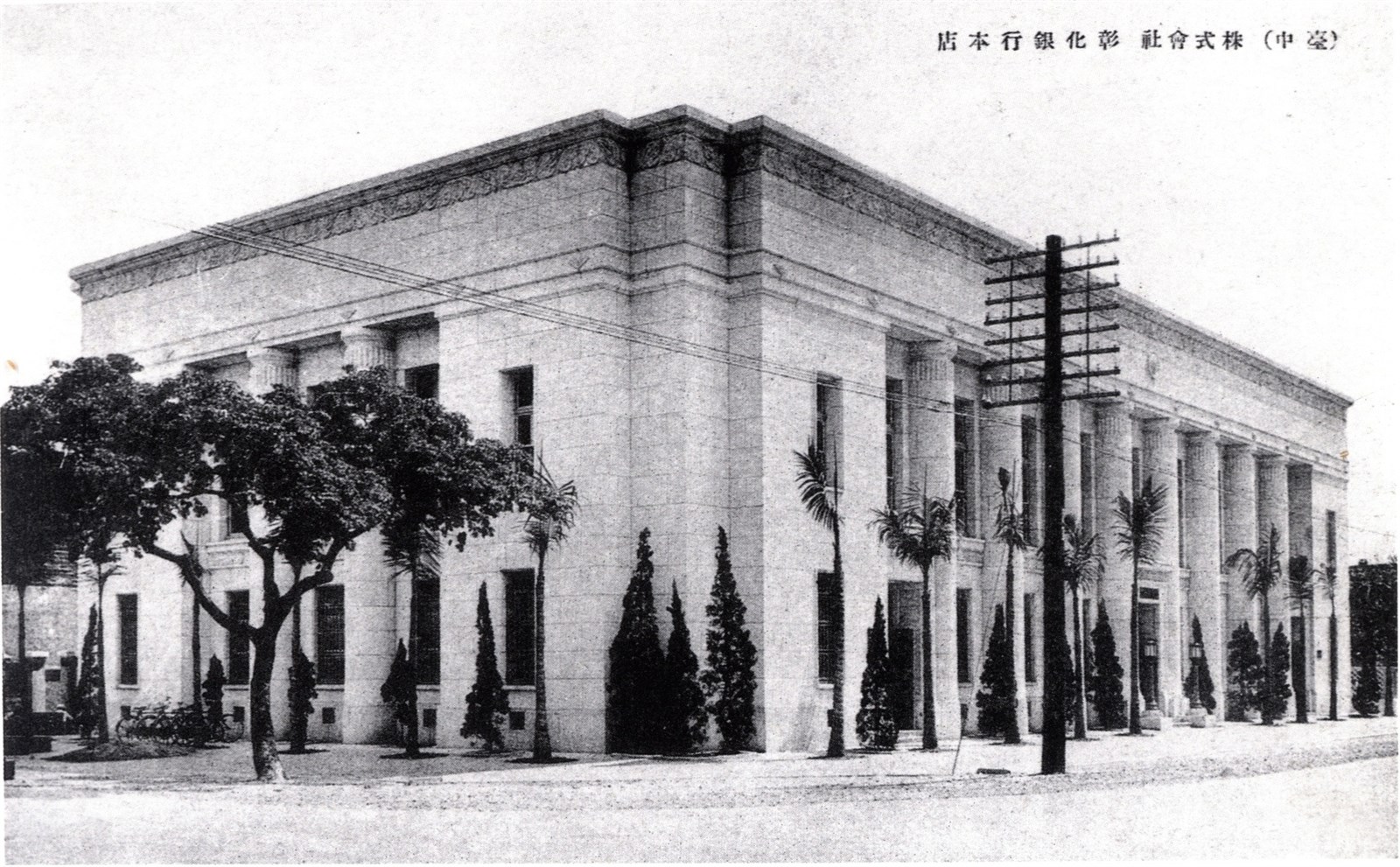 照片為日治末期為於臺中大正町(今自由路與中正路口)的彰化銀行總行。 1905年(明治38年)彰化銀行開辦之初,是借用彰化廳官舍做為營業處,官方扶持色彩顯著,至1907年(明治40年),新建行舍落成方才遷出。1909年(明治42年),因地方行政官制革新,中部地區行政以臺中為核心,故彰銀收購臺中共立學校之校舍,修繕後設置臺中出張所(分行),並開始辦理經收臺中廳地方稅款業務。隔年股東常會更決議將總行由彰化遷至臺中,原彰化總行則改為彰化出張所,至此形成雖名彰化銀行,總行卻在臺中的有趣現象。(摘錄自臺中市政府文化局〈文化城中城歷史現場 - 彰化銀行創設與總行沿革〉一文,詳見關聯資源網頁) 本照片出自《台中市珍貴古老照片專輯第四集》〈建物與景勝篇〉(第149頁),2000年12月出版,為保留照片的純樸風味,本專輯不作多餘的贅飾,僅將徵集評選出來的古老照片翻拍並分類編排,計分:人物與服飾篇、教育篇、建物與景勝篇、市街與交通篇、生活篇等五個篇章,盡量呈現古照片的原始風貌,讓讀者得以細細玩味舊時代的生活情趣。