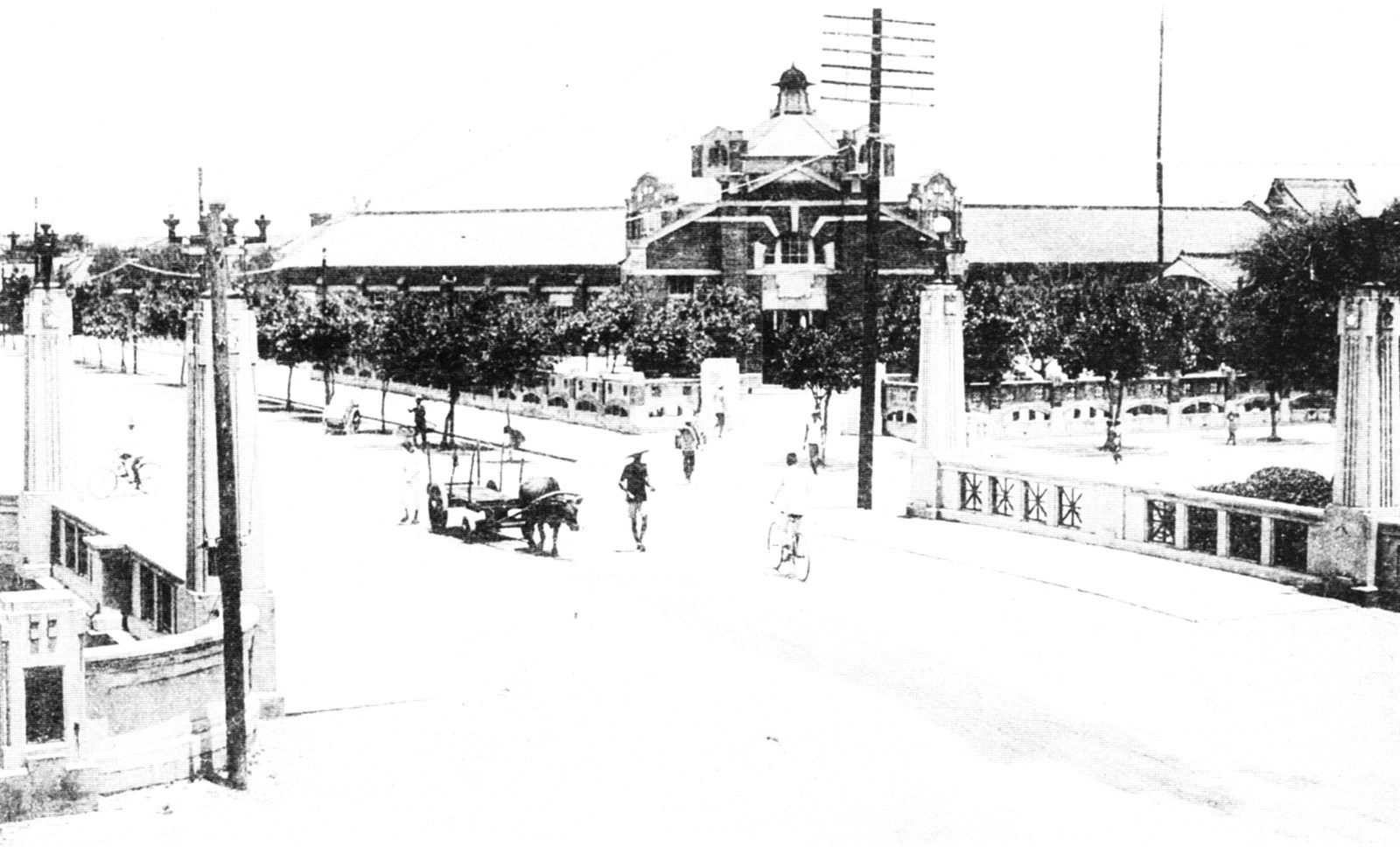 臺中火車站正前方的櫻橋通(今中正路),稀疏的行人和牛車與寬廣的道路形成強烈的對比,背景是 1908 年開設的臺中第一市場。 日治時期大正15(1926)年3月,臺中市實施地號調整及改稱町名,市街由東至西的道路,以綠川上的橋名稱作路名,即從北向南為干城橋通(今成功路)、櫻橋通(今臺灣大道、原中正路)、新盛橋通(今中山路)、榮町通(今民族路)、大正橋通(今民權路)等。 出自《台中市珍貴古老照片專輯第二集》〈永遠的文化城〉ㄧ章(第201頁),1996年6月出版,為保留照片的純樸風味,臺中市政府文化局1994年起向民眾多次徵集珍貴古老照片。此專輯主題為「文化協會的年代」,共分為十章:臺灣文化協會滄桑、臺灣的聲音、阮是開拓者、同胞須團結、覺悟下的犧牲、願為同胞倒海傾、誰是無力者、千古風流人物、永遠的文化城、斷簡殘編。讓讀者得以細細回味舊時代的點點滴滴。