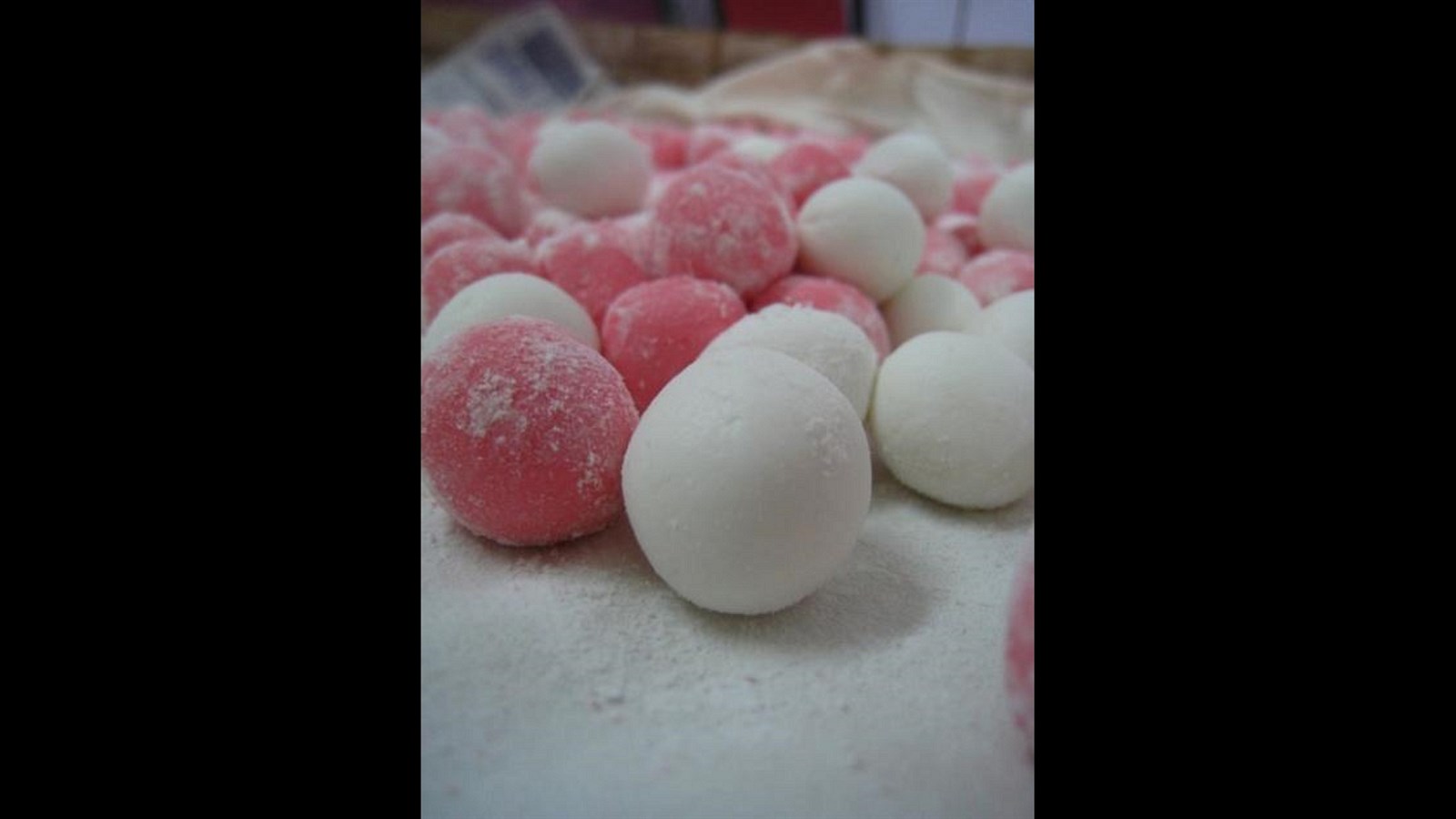 粄圓,裡面是有包肉餡,大多的餡料有香菇、絞肉、蝦仁,通常內餡的食材都要先炒過。另外,還有就是牛汶水,牛汶水就是大的粄圓,客家有一種做很大的大粄圓,做好以後要壓一下,壓了之後會凹下去就好像肚臍,這樣煮才會熟。它又叫做「不甘願」粢粑,名稱的由來則是早期客家婦人農忙後,晚上丈夫要求做粢粑吃,於是很不甘願的把粢粑壓扁,隨意和糖水吃。這道將粢粑放入老薑汁熬紅糖湯汁中食用的方式,除了風味不同外,也有祈求秧苗穩固成長豐收的吉祥寓意。