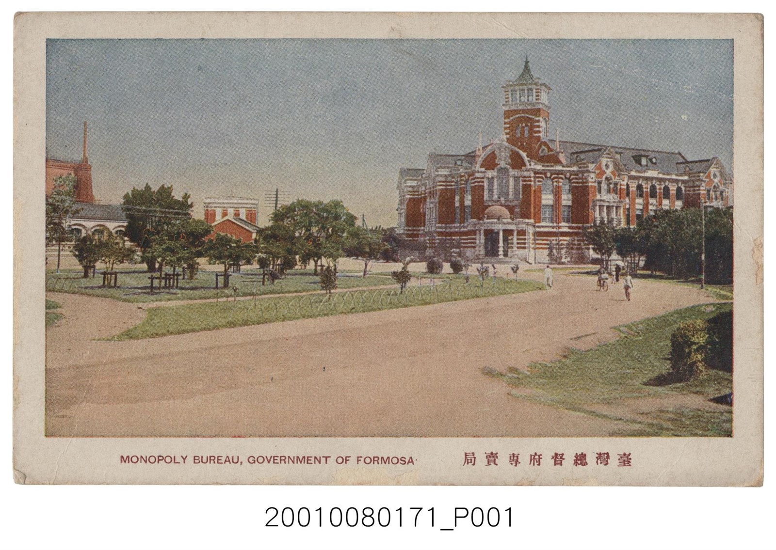 1.本物件為以臺灣總督府專賣局為主題之明信片,其正面為臺灣總督府專賣局彩色圖像,下方有2段文字,第1段「臺灣總督府專賣局」,第2段「MONOPOLY BUREAU, GOVERNMENT OF FORMOSA.」 ;其背面為空白明信片直式書寫面,以深藍色單色印刷,於左上處有圖案,內有由上至下「TOKYO DESIGN PRINTING」、「 TRADE MARK」、「千鳥印」、「登陸商標」、「 KANDA TOKYO」字樣,可推知為東京神田設計。上方有「郵便はがき」字樣,左側有「CARTE POSTALE」字樣,中央有「臺北新高堂發行」字樣。