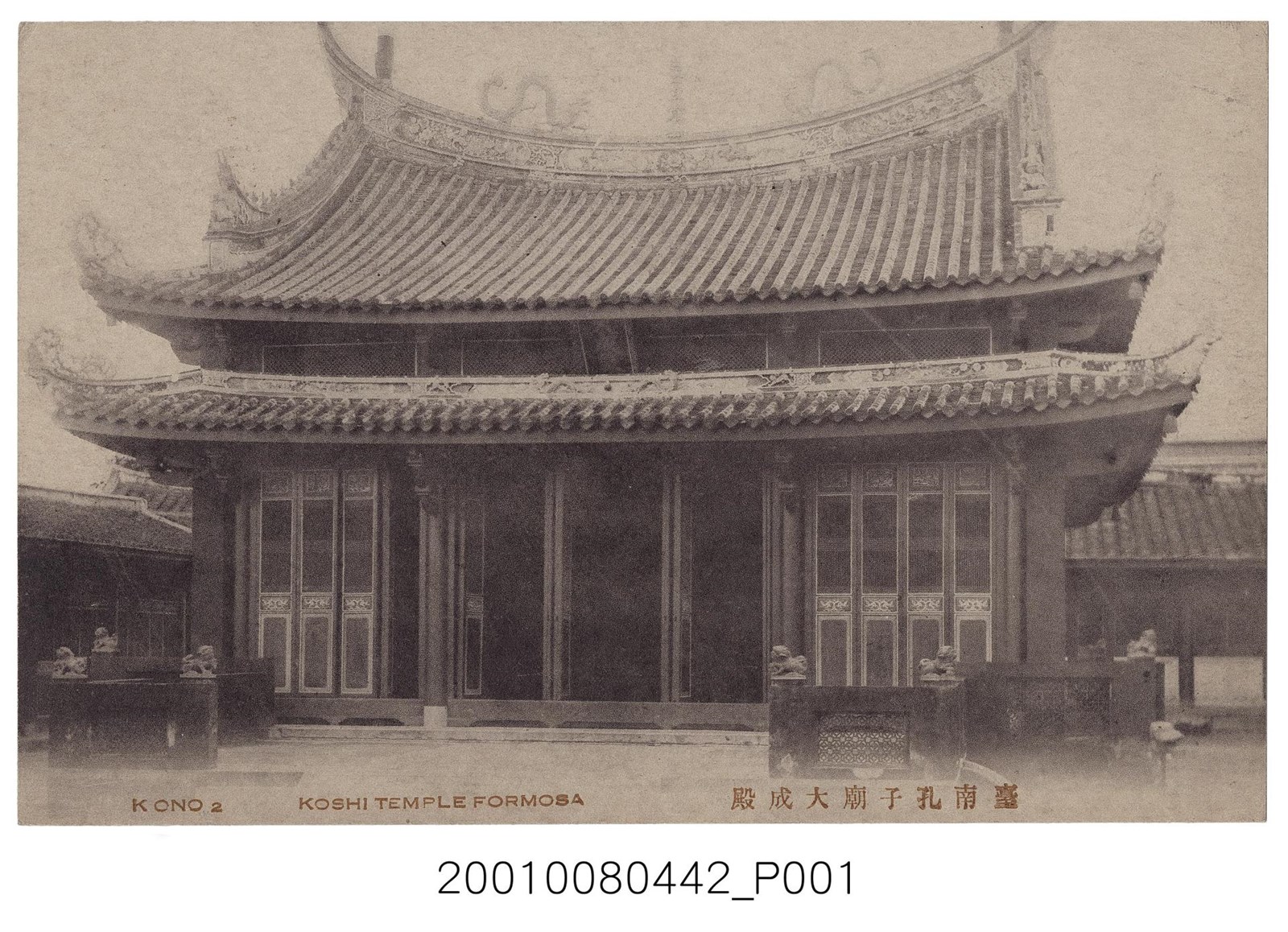 1.本名信片以臺南孔子廟為主題之明信片,黑白樣式。正面為孔子廟大成殿圖像,下方以漢字書寫「臺南孔子廟大成殿」、英文字母書寫「KOSHI TEMPLE FORMOSA」。背面右上角為郵票黏貼處,右側有以漢字、平假名書寫之「郵便はがき」,上方以英文字母書寫「Carte Postale」、「Union Postale Universelle」,中間寫有MADE IN JAPAN字樣。