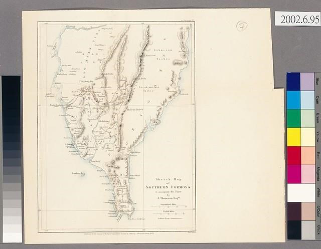 〈南部福爾摩沙地圖〉(Sketch Map of Southern Formosa),約翰湯姆生(John Thomson,1837-1921)繪製,1873年出版於英國皇家地理協會。