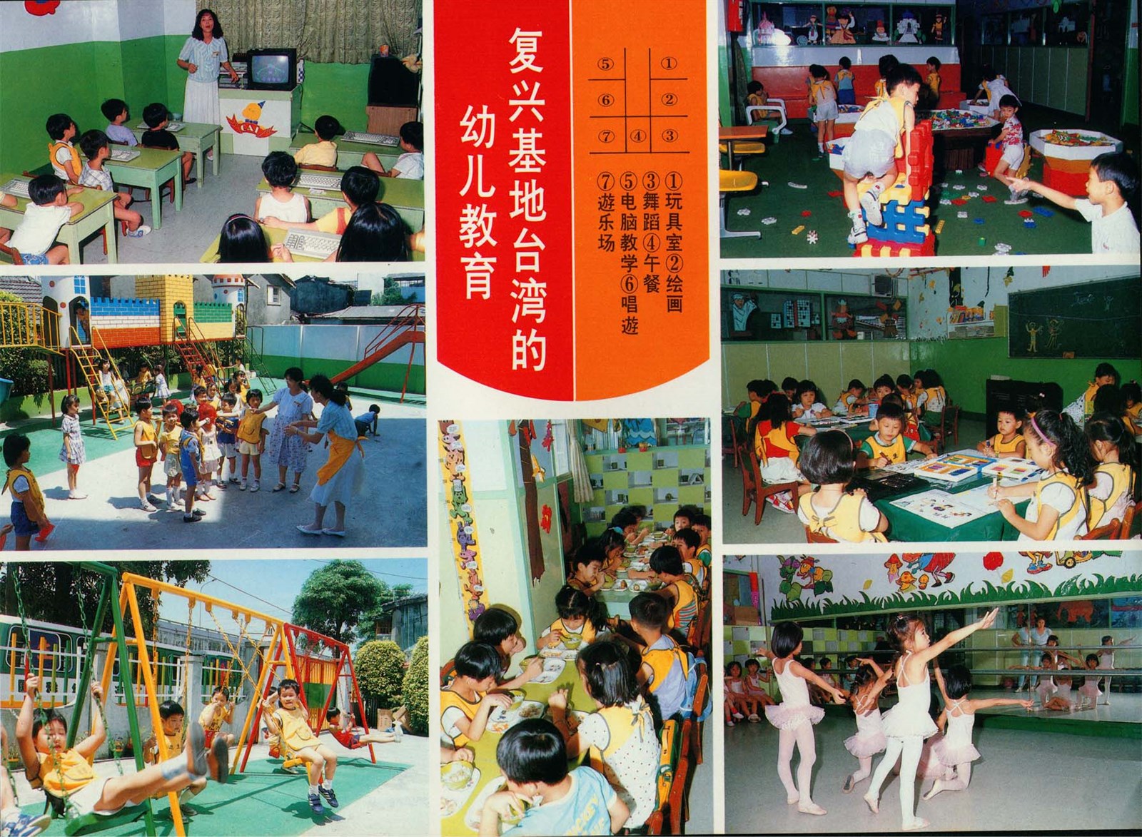 此物件製作時間點不詳,為我方對大陸宣傳之宣傳單,其主要宣示內容為「復興基地台灣的幼兒教育」,以圖文報導形式製作,其中照片主要以幼兒園孩童活動課程照片及三重市道生幼兒園、泰山鄉青園幼兒園校園照,輔以文字方式說明提及台灣幼兒教育歷年建設成績。