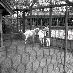 圓山動物園設立於日治時期大正3年(1914年),迄今已百餘年歷史。最初為民營,大正4年被臺灣總督府收購,成為官營動物園,大正5年起正式營運。戰後初期,圓山動物園剛從戰火中走出,動物種類及數量減少,但戰火並未嚴重損及動物欄舍,因此戰後的建物大多沿襲過去的規模。1940年代後期開始以動物表演、動物展覽會等活動吸引遊客。1950年代開始擴建並大量引進新動物,新增獸欄園區,面積約5.8公頃。民國75年,因圓山原址無法擴建,遷建至木柵地區,此即國人現在所熟知的「木柵動物園」。圖為民國37年11月所拍攝,一位小朋友正與圓山動物園內的山羊玩耍的畫面。