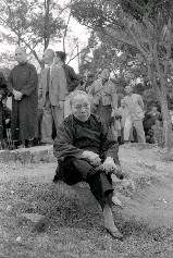 臺北市政府為慶祝蔣中正總統72歲壽誕,於民國47年10月31日下午1至5時,在圓山動物園舉辦敬老園遊會。臺北市70歲以上的9千餘位老人中,有7千餘位參加,並由家人陪同暢遊動物園,估計參加園遊會人數,多達2萬餘人,熱鬧非凡。園遊會節目,包括:動物表演、兒童歌舞表演、相聲等,甚為精彩。老人們並於會後參加摸彩活動,由於獎品眾多,大多盡興而歸。此次以園遊會的名義舉辦「敬老」,頗能引起老人與家屬們的興趣,再加上還有表演節目和摸彩,因此參加人數踴躍,老人們彼此也會相互認識,即使語言不通,也多能報以會心一笑,此為園遊會最為吸引人之處。惟一美中不足之處在於老人們爬山均感吃力,必須在家人扶持下徐徐而行,又因人數眾多,秩序略微紊亂。圖為老人們在家屬陪同下,徐徐而行,往摸彩的目標前進。照片前方為79歲的蔡招治老太太,她從大門走到半山頂,略感吃力,因此坐在路旁的石頭上歇腳,由於沒有家人的陪伴,神情極為嚴肅。