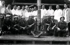 中國石油公司苗栗出磺坑油田A2號及A3號新油井開鑽典禮,於民國41年6月22日下午1時,在A2號新油井現場隆重舉行。典禮由我國經濟部長張茲闓主持,美國安全總署遠東計畫助理署長戴克、安全分署署長施幹克與苗栗縣長賴順生、臺大教授宋希尚、中油公司總經理金開英、臺灣油礦探勘處處長董蔚翹、副處長吳德楣及該處各主管幹部暨有關工作人員等20餘人均出席盛典。經濟部長張茲闓在致詞時首先報告新井開鑽之意義,並對美國安全總署對我國之援助,深致謝意;繼由戴克及施幹克分別致詞,對臺灣積極邁向工業化的努力,表示肯定與支持之意。苗栗出磺坑油田為臺灣石油的發源地,從西元1861年(清咸豐11年)邱苟以人工方式挖掘石油開始,油田開採已有90餘年的歷史,此次經美安全分署邀請澳洲及美國石油地質專家先後前來出磺坑油田實地作長期研究與調查後,認為該地第二及第三層油田所貯原油甚豐,確定可開鑽12個新井。此次A2及A3兩新井,均位於出磺山之最高峰,兩井將分別鑽取6百公尺及9百公尺,預計3個月後可以完成,屆時臺灣原油生產,當可激增。圖為出席苗栗出磺坑油田A2號及A3號新油井開鑽典禮的中外貴賓與工作人員合影(後立左2起依序為王蓬、金開英、戴克、施幹克、張茲闓、朱謙;後立右1為吳德楣、右2為董蔚翹、右4為張錫齡)。