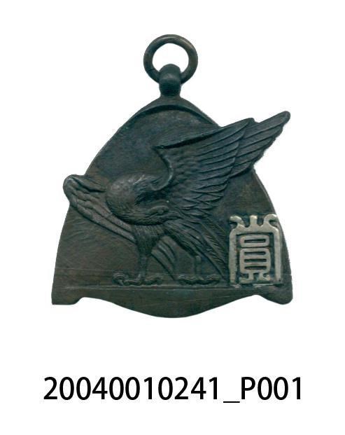1.本件徽章略呈三角形,正面雕刻一隻鷹,上寫一賞字,背面上方有一民字的符號,下方寫臺灣新民報社。