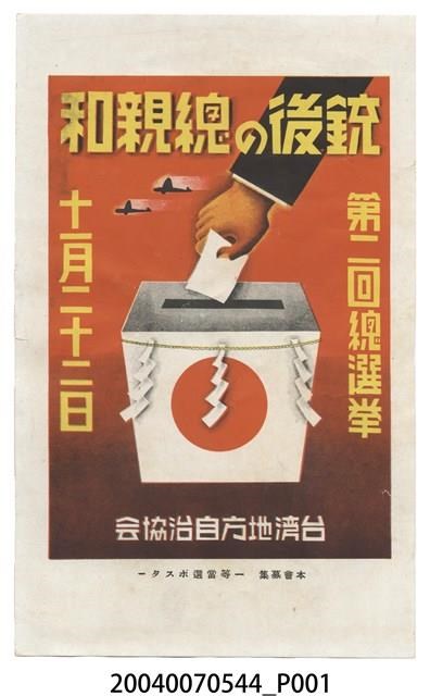 此物件為單面彩色海報。此海報以紅色為底色,海報文字為「銃後の總親和∕第二回總選舉∕十一月二十二日∕臺灣地方自治協會」,中央為一選舉投票的插圖。海報底部附有文字說明,此為「本會募集一等當選ポスタ-」。此海報為臺灣地方自治協會因應選舉而舉辦的選舉宣傳文宣徵求活動的入選品。