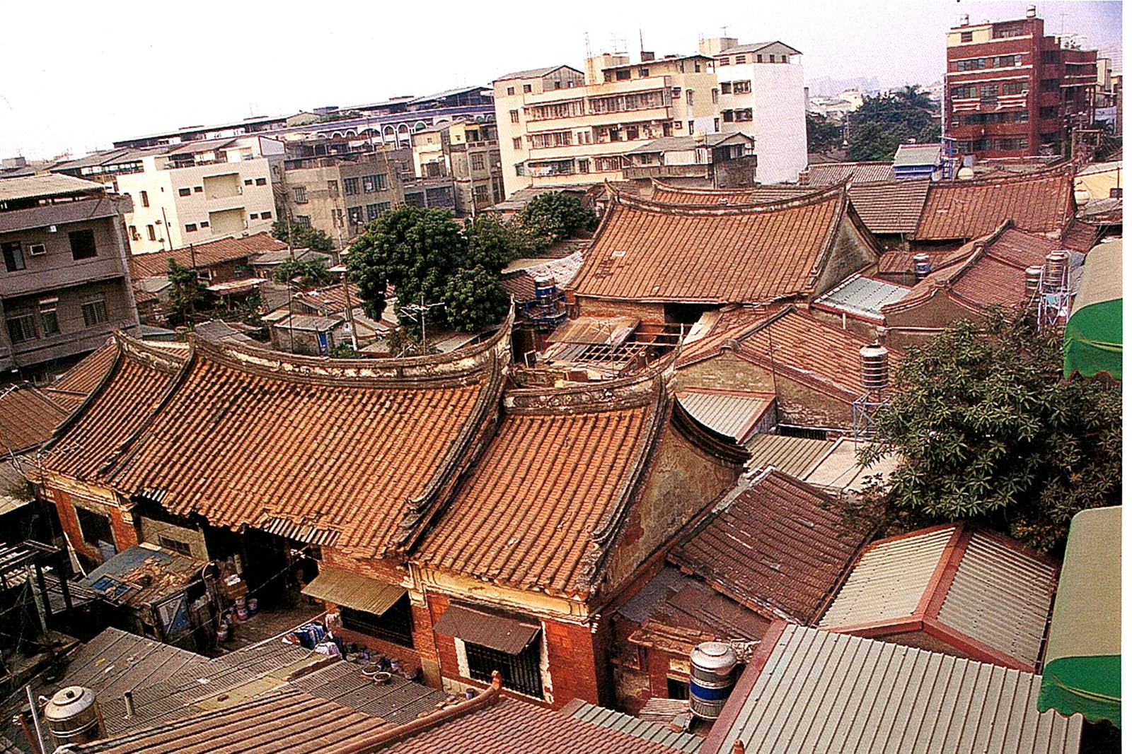 照片為李乾朗教授於1996年(民國85年)拍攝的鳳儀書院整修前的鳥瞰圖。鳳儀書院為至今台灣所保存清代古書院中,最完整與最大的書院建築。書院建物的格局從照壁﹑頭門﹑試院﹑講堂﹑廳事及左右學舍,至今仍被保留下來。