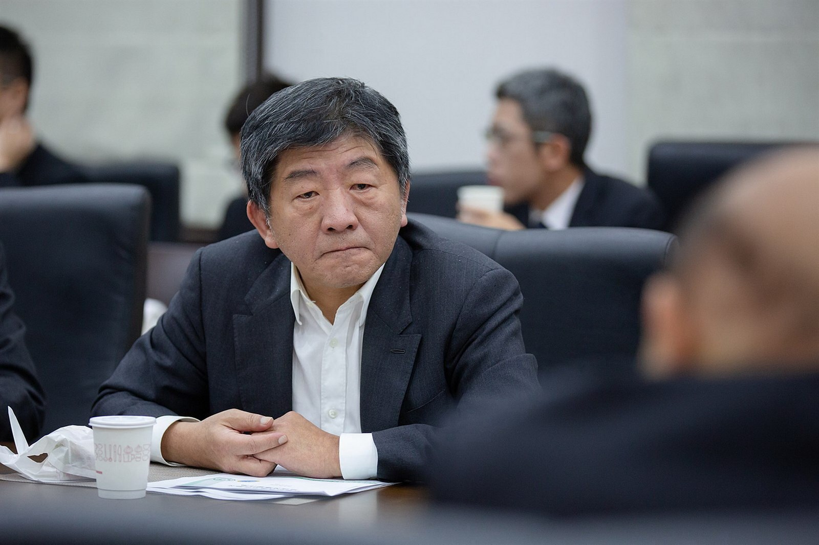 此圖為現任衛生福利部部長,於嚴重特殊傳染性肺炎(Coronavirus disease 2019)疫情期間,以衛福部部長身分兼任中華民國中央流行疫情指揮中心指揮官的陳時中先生,本照片由拳擊手提供。