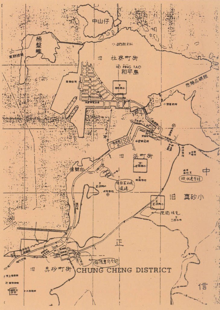 至於「和平島」(戰後由「社寮島」改稱)、「中山仔」、「信號臺」(1949年,民國38年8月完工)、「危險品碼頭」、「東防波堤」等標註,應為戰後時期的人所作;圖稿上更有「水產學校」、「道場」等劃圈、手寫標註的筆跡,推測此份圖稿的功能,是用來對照日治時期在和平島、八尺門、大沙灣上的各地名、空間概況。