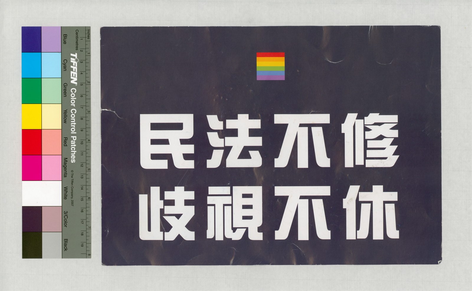 此物件為「讓生命不再逝去,為婚姻平權站出來音樂會」的宣傳單,一面印有「民法不修歧視不休」口號,另一面則印有舉辦此次音樂會之目的與訴求,藉此爭取大眾支持婚姻平權。