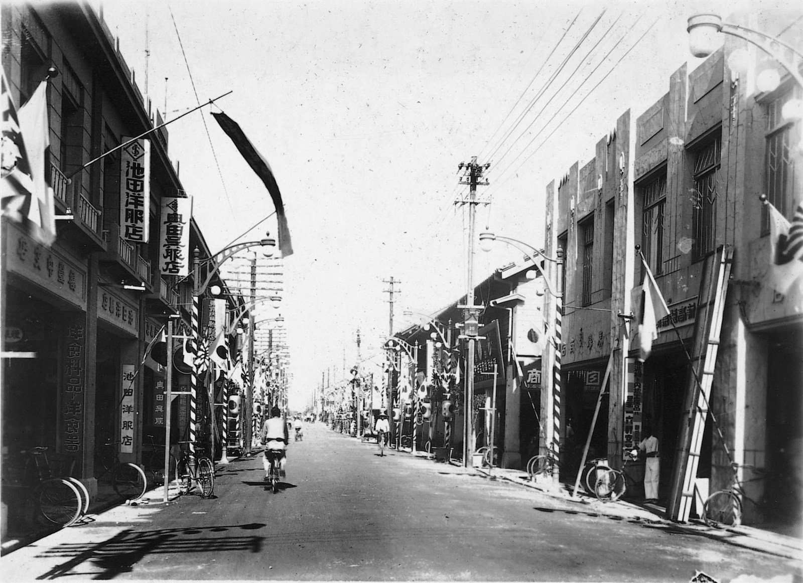 1.《臺灣寫真大觀》編號33之黑白照片,影像內容為臺中市大正町(今自由路二段、公園路與民權路之間)懸掛著日本國旗的街景,街道上因設有鈴蘭花造型的路燈,又稱為「鈴蘭通」。