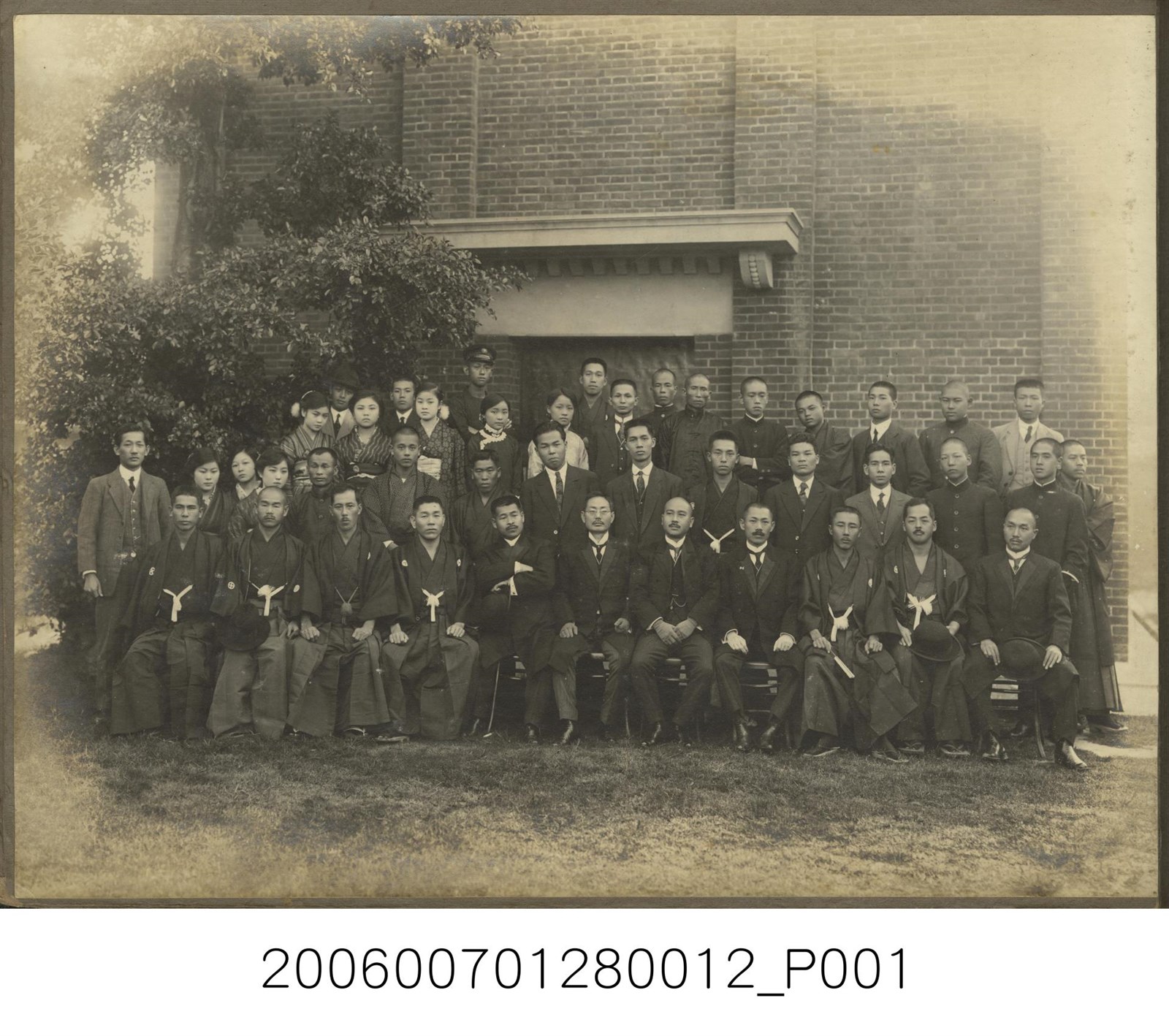 1.本物件為彰化銀行員工合照,照片背景為大樓外空地,照片主題為銀行員工大合照,第1排成員坐於椅子上,後面各排則站立於後一同入鏡,照片成員有數十人,其中多為男性,僅有少部分為女性,成員中有些著日本傳統和服,有些則著臺灣服裝,還有著西裝,整張照片相當斑駁泛黃且模糊不清。