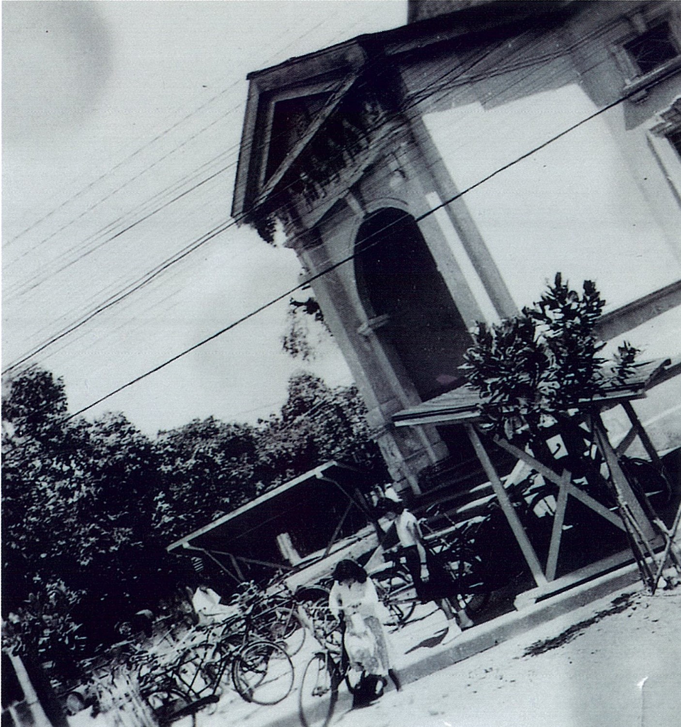 此張照片所拍攝之地點為今日花蓮市公園路與復興街交叉路口,民國44年(1955)的臺灣銀行。臺灣銀行,簡稱為:「臺銀」,是臺灣的第一家銀行,其創立於明治32年(1899)。民國38年(1949)中華民國政府來臺後,受到中華民國中央銀行之委託,在臺灣地區發行了現今所使用之法定貨幣 :「新臺幣」。而從照片中可以看見,在當時的臺灣銀行兩邊僅有相當簡陋之腳踏車的車棚,附近則似乎有一個公園,而在都市計畫整體的推動之下,現今的臺灣銀行四周則新建了中央市場、第一銀行、飯店等各行業,成為了花蓮現今相當重要的繁華商圈。照片由曾忠榮提供。