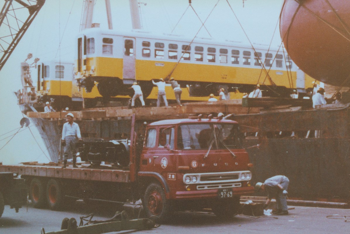 照片為1970年(民國59年)向日本購買的光華號拖車8輛於花蓮港下貨的景象,上白下黃的車身樣式俗稱為黃皮仔。光華號於1968年(民國57年)11月1日開始於東線的762mm軌距上行駛,花蓮至台東路段的車程能夠以3小時10分鐘至30分內完成(時速約65~80公里),有別於早期的蒸汽機車行駛所花費的時間,與當時的客運、飛機等交通工具進行比較是非常具有競爭力的,成為一代傳奇。光華號主要以光華號動力車(LDR2300型)牽引二輛光華號拖車的組合來營運的,一般是二組即總共六輛的編成進行載客服務,車上還有由光華號小姐所提供的免費茶水服務。直到1982年(民國71年)6月東線鐵路拓寬至1067mm軌距,光華號被自強柴聯車取代而改後改造符合的軌距並漆成深藍色,作為普通區間車使用。
