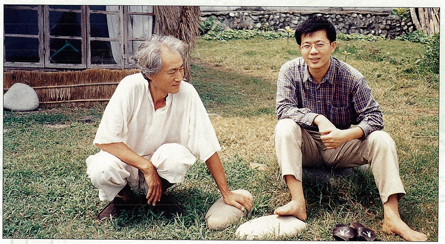 照片為作家孟東籬(左)與詩人陳黎(右),1995年(民國84年)年,詩人陳黎與其他文人朋友一同至老孟的住處「濱海茅屋」拜訪。孟東籬,1937年(民國26年)出生於中國河北(當時臺灣為昭和12年),1948年(民國37年)隨父母來台,卒於2009年(民國98年)9月21日,本名孟祥森,有「綠色生態作家」的稱號,曾移居花蓮縣鹽寮村的海邊,親手搭起簡易的房屋,取名「濱海茅屋」,並寫下《濱海茅屋札記》;陳黎,本名陳膺文,為花蓮縣的在地詩人、台灣中生代作家,創作能量驚人,著有《小丑畢費的戀歌》、《親密書》、《島嶼邊緣》、《聲音鐘》等。照片提供:邱上林。