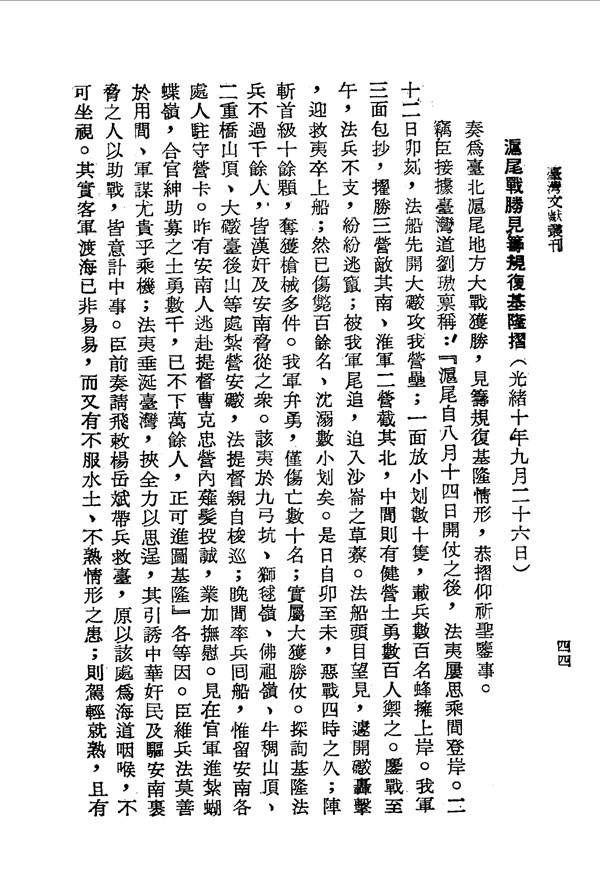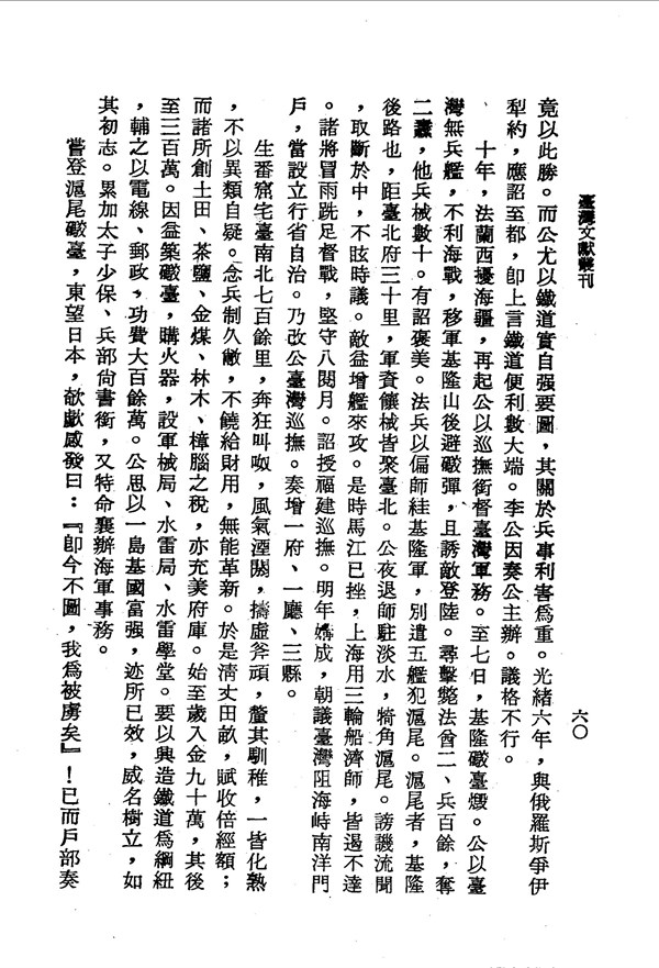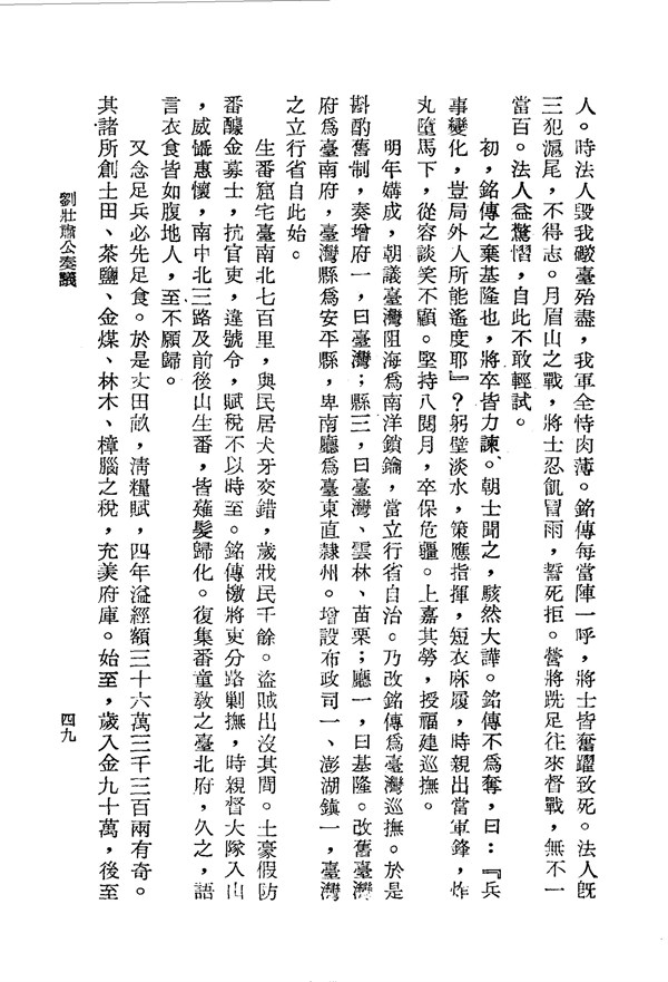 劉銘傳在台事蹟 劉壯肅公奏議卷首 台灣文獻史料叢刊 -