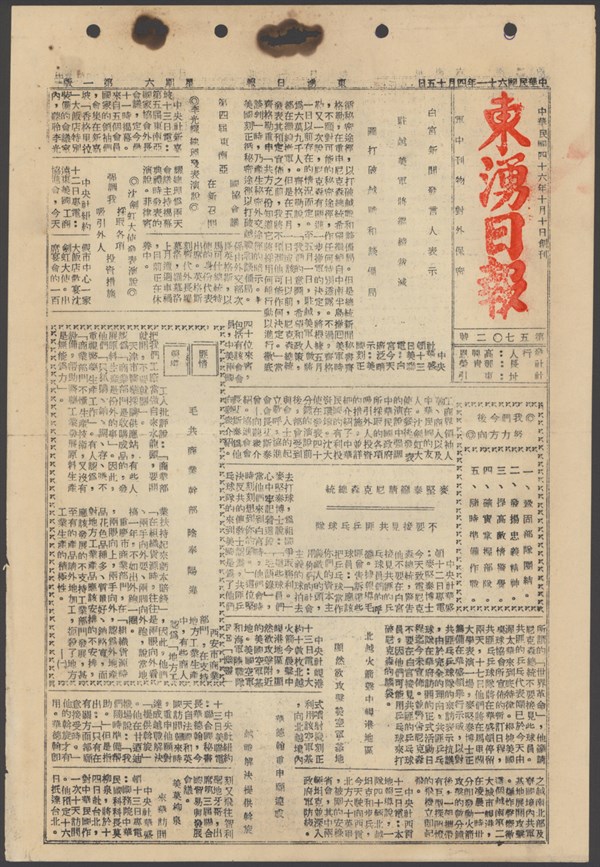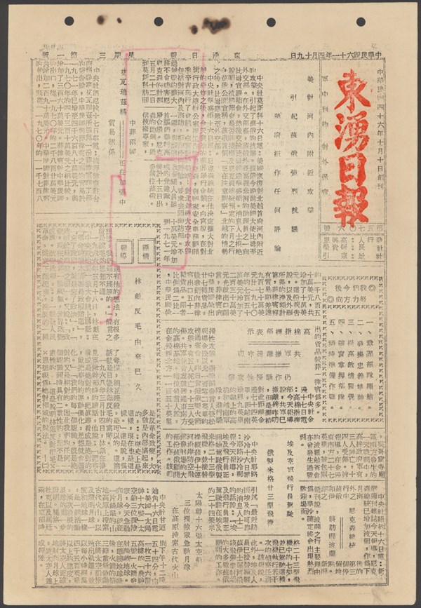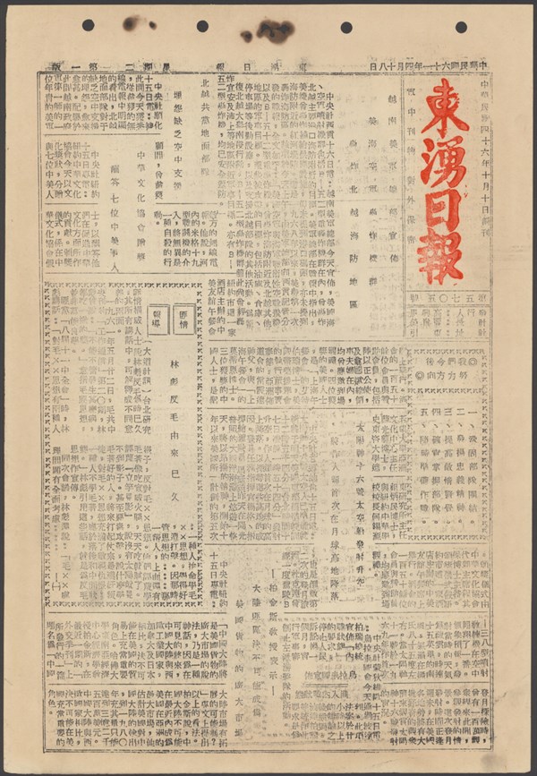 中華民國61年5月9日東湧日報第五七二六期第一版 -