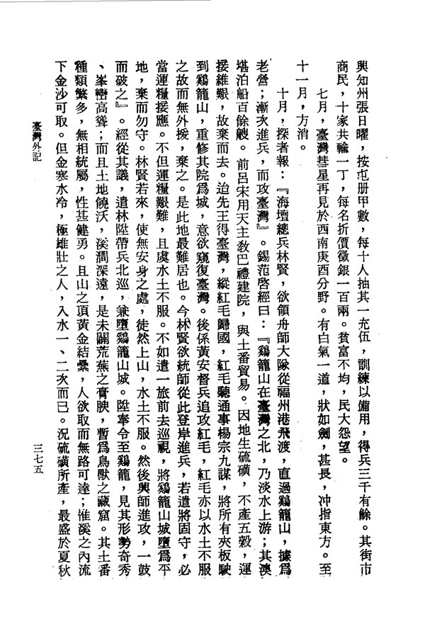 忽滿天昏暗,雞籠山諸軍大發疾病 臺灣外記卷九 台灣文獻史料叢刊 -