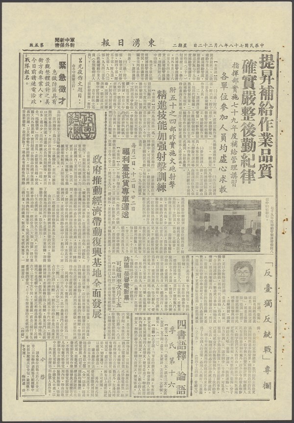 中華民國78年8月22日東湧日報第一一四六四期第五版 -