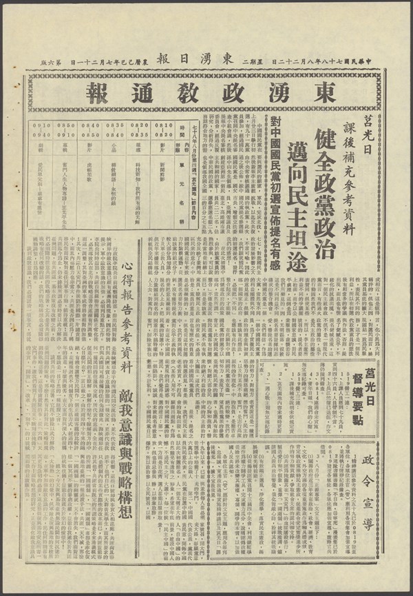 中華民國78年8月22日東湧日報第一一四六四期第六版 -