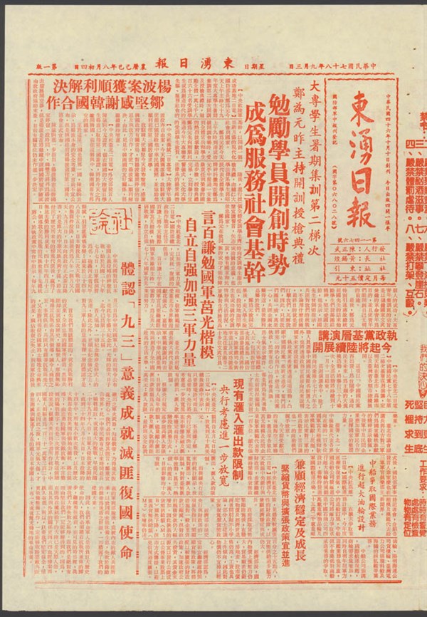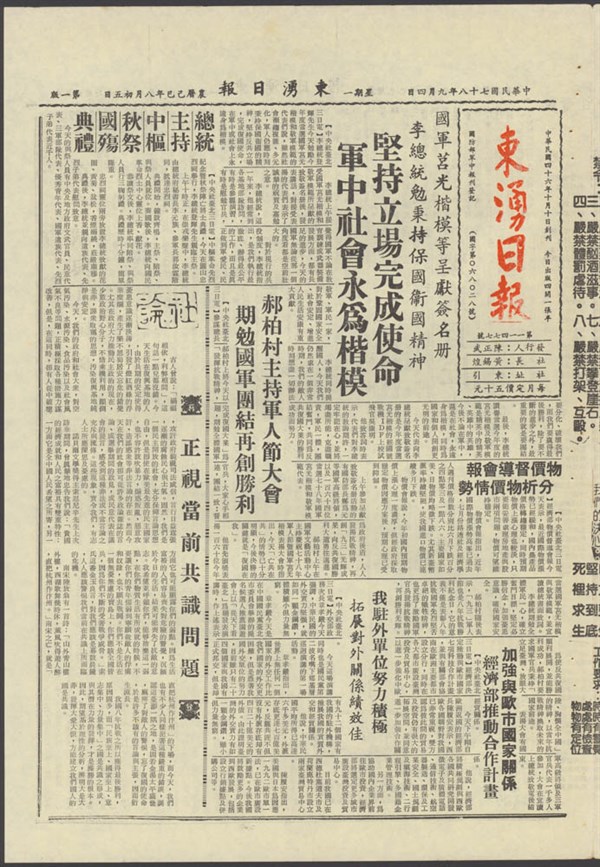 中華民國78年9月4日東湧日報第一一四七七期第一版 -