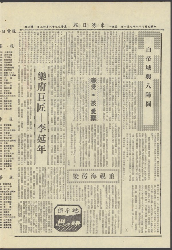 中華民國78年9月3日東湧日報第一一四七六期第二版 -