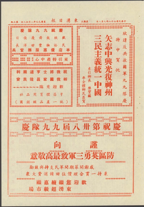 中華民國78年9月8日東湧日報第一一四八一期第五版