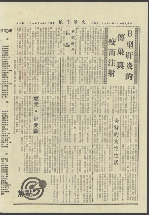 中華民國78年9月8日東湧日報第一一四八一期第二版 -