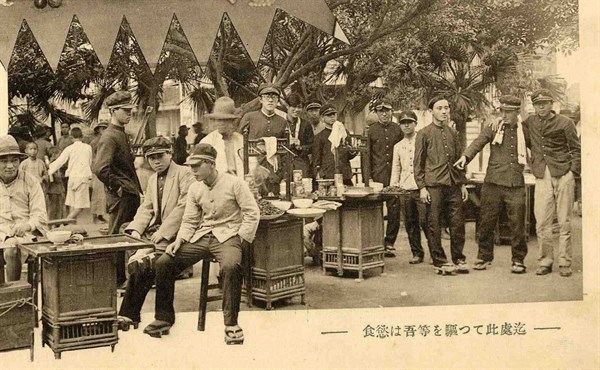 臺北高等學校1932年第5屆理乙班在街頭集體一起享受小吃美食 -