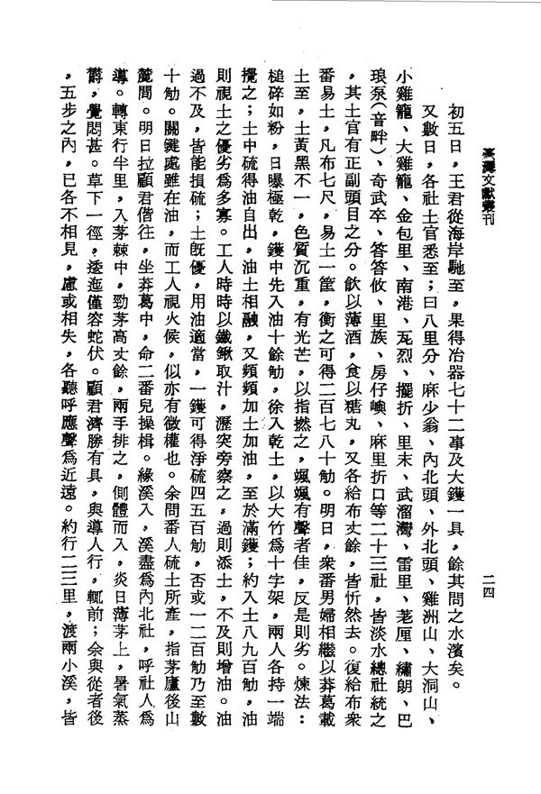 入後山麓,硫土所產處 裨海紀遊 台灣文獻史料叢刊