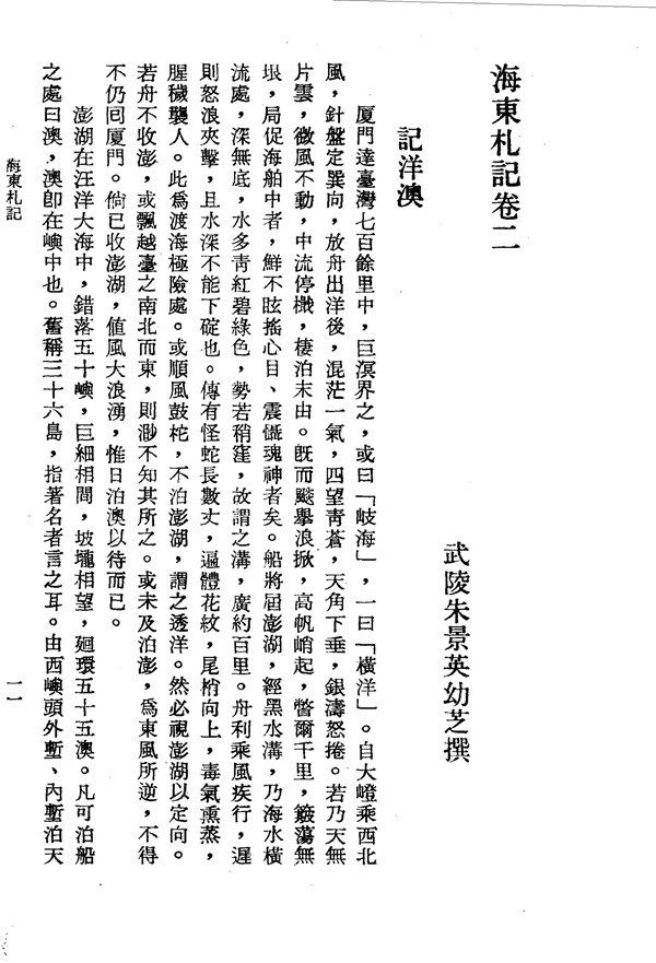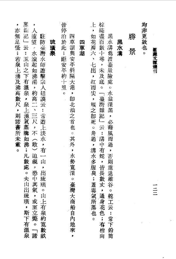 黑水溝為渡臺最險處,水益深黑,必藉風而過 臺陽見聞錄卷下 台灣文獻史料叢刊 -
