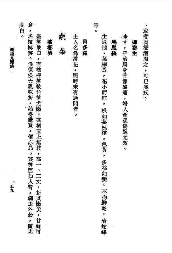 馬尾絲生濕地,治蛇蜂毒 臺陽見聞錄卷下 台灣文獻史料叢刊 -