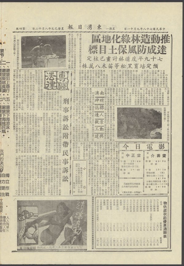 中華民國78年9月11日東湧日報第一一四八四期第四版 -