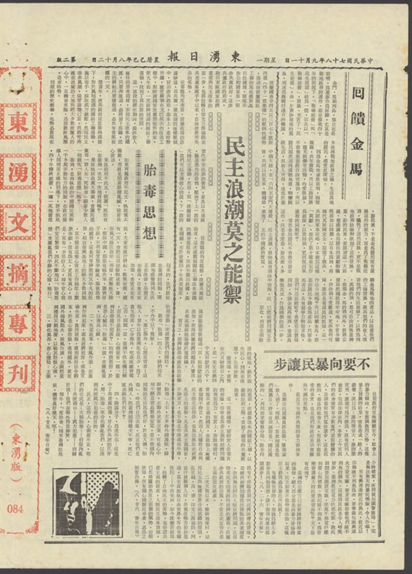 中華民國78年9月11日東湧日報第一一四八四期第一版 -