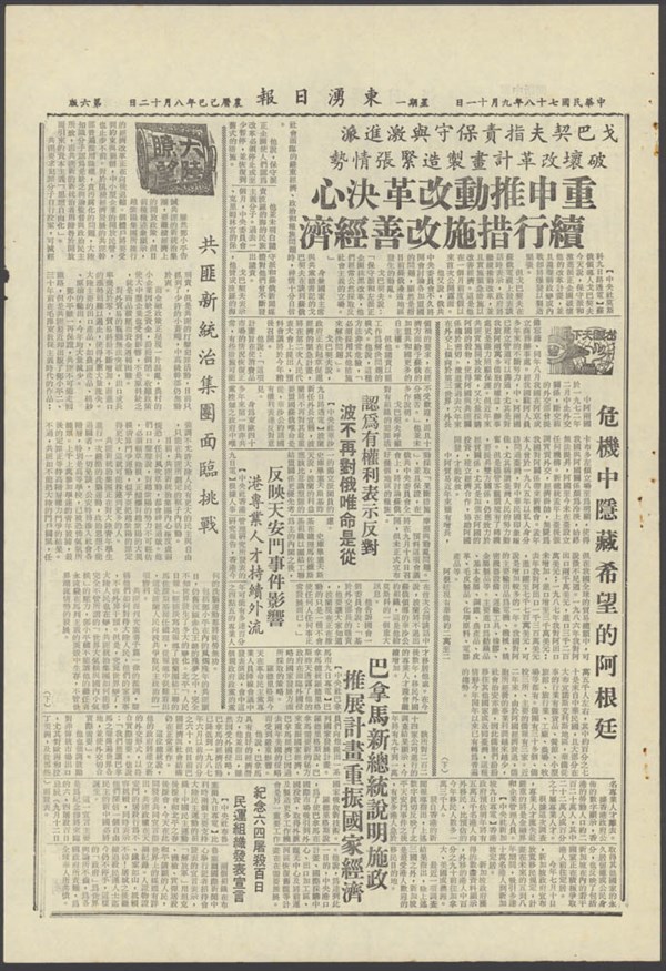 中華民國78年9月10日東湧日報第一一四八三期第六版 -