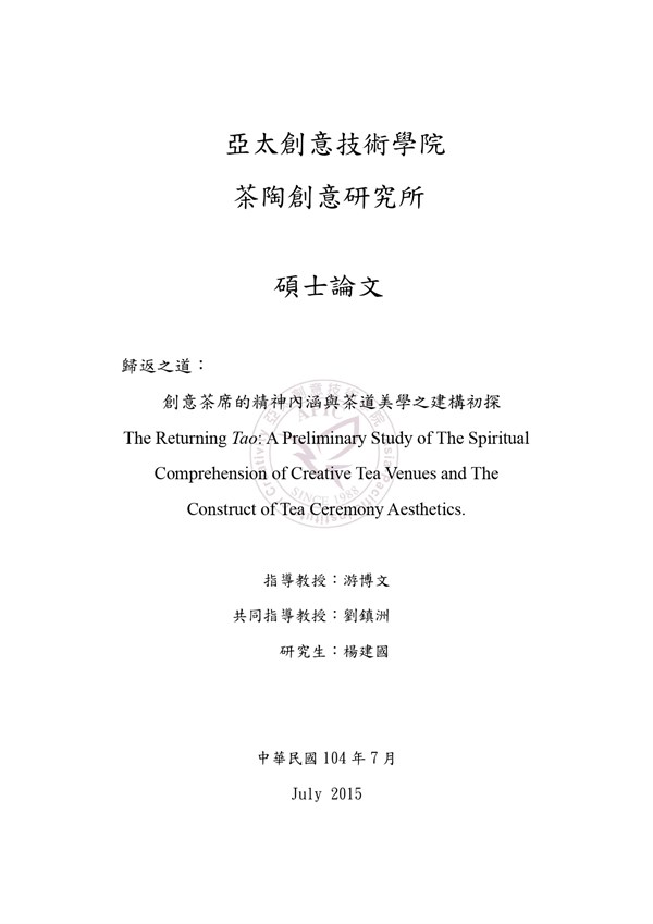 歸返之道:創意茶席的精神內涵與茶道美學之建構初探 -
