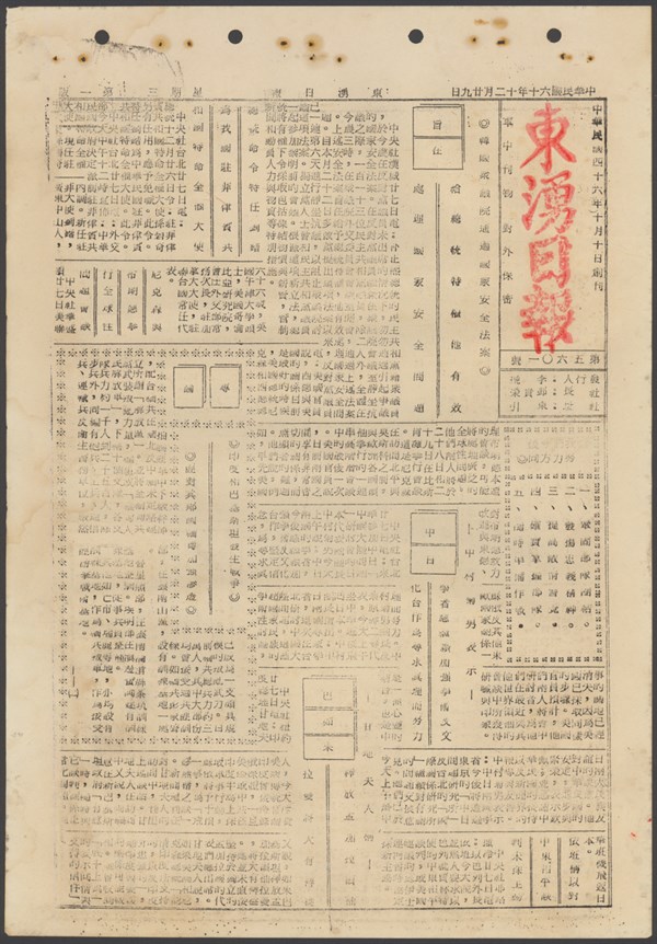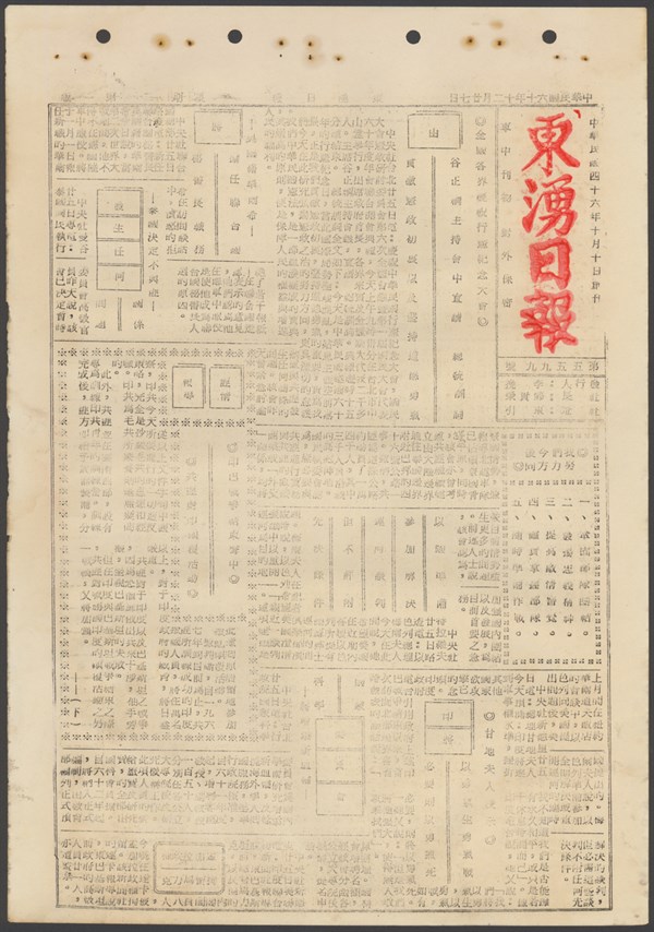 中華民國60年12月28日東湧日報第五六○○期第一版 -