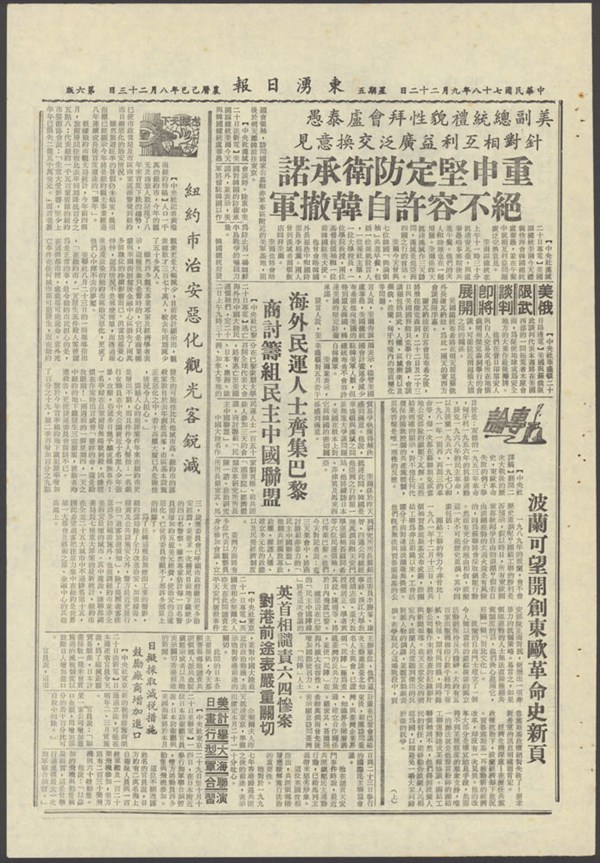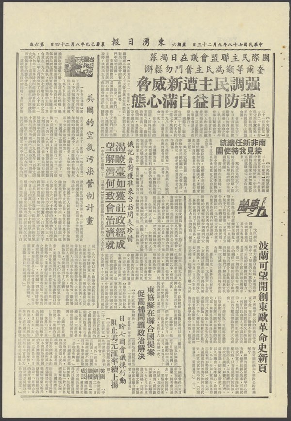 中華民國78年9月23日東湧日報第一一四九六期第一版 -