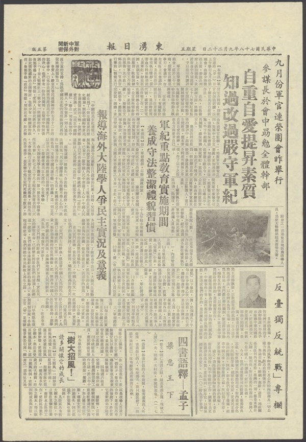 中華民國78年9月22日東湧日報第一一四九五期第五版 -
