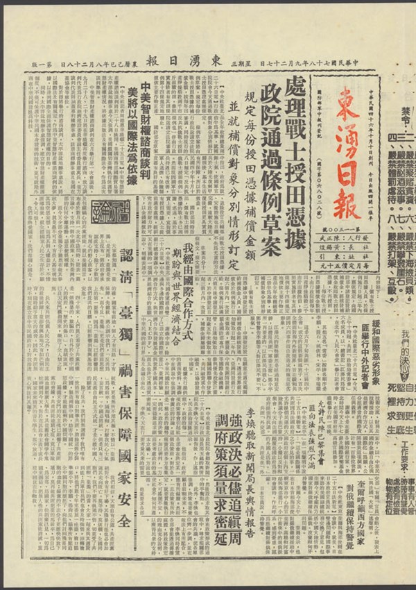 中華民國78年9月28日東湧日報第一一五O一期第一版 -