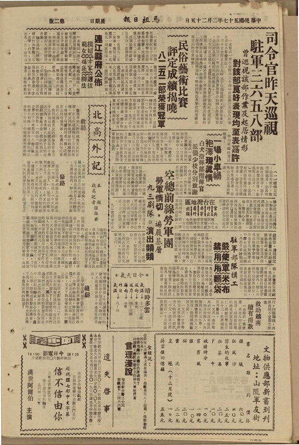 馬祖戰地政務委員會頒布軍品流入民間清查辦法-馬祖日報 -
