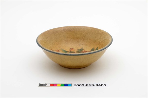 紅綠彩黃閃光釉牡丹花卉紋碗 -