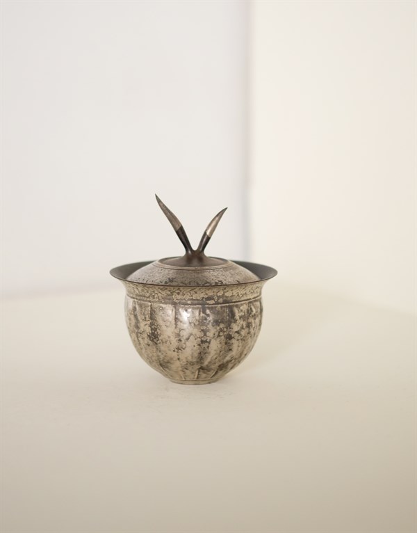 2019年4月24日至5月5日臺灣文博會工藝館,茶3.1415展場中央貴的作品「銀釉兔耳蓋杯」 -