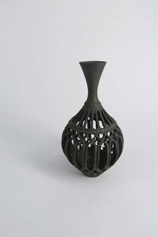 2019年4月24日至5月5日臺灣文博會工藝館,茶3.1415展場中伊藤剛俊的作品「鐵黑透雕瓶」 -